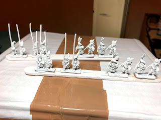 Two strips of 10mm Pikeman and Halbediers. You will notice I used the same figure poses on both strips makes comparison more visually accurate.